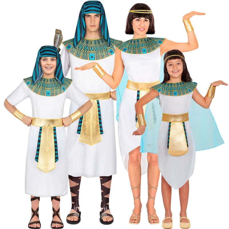 Les déguisements égyptiens pour familles entières offrent un look majestueux, coordonné et économique, idéal pour un déguisement égyptien pour groupe recherchant un effet spectaculaire.