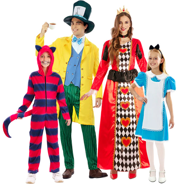 Fantastique idée pour déguiser toute la famille en Personnages du Conte d’Alice avec des designs assortis pour homme, femme, garçon et fille. Vous pouvez accéder au contenu de chaque costume plus bas dans la section « Complétez votre look », où figure chaque costume appartenant individuellement à ce groupe.