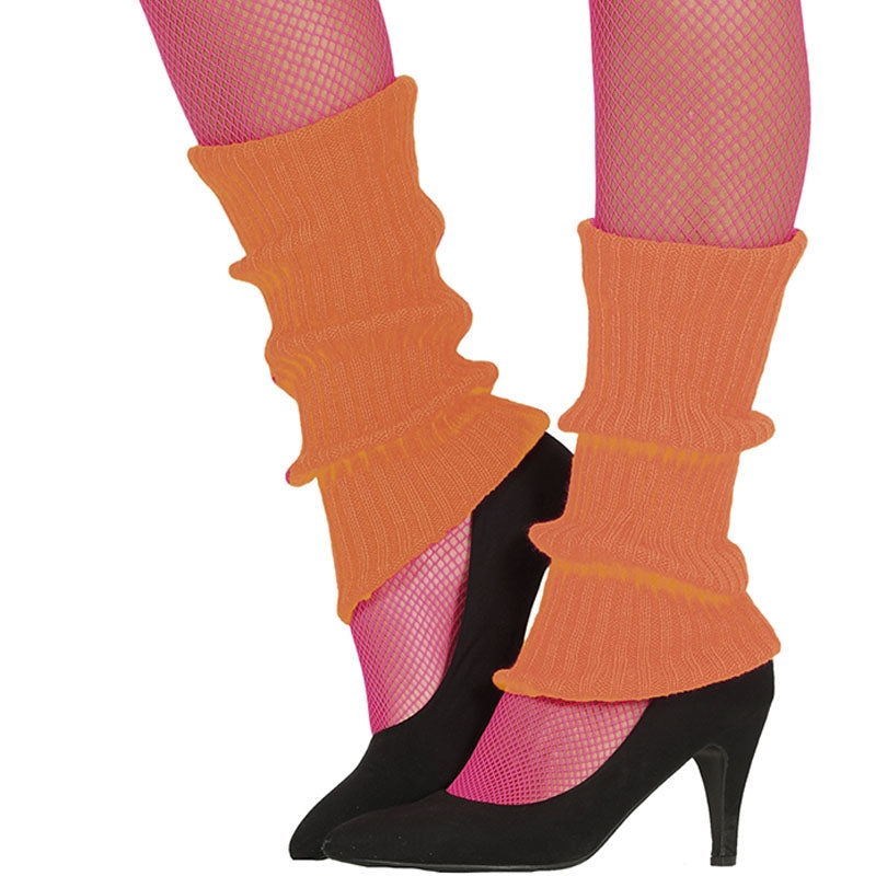 Paire de Guêtres couleur Orange Fluo pour donner la touche originale à votre déguisement années 80 | Ces voyantes Guêtres rétro Orange sont taille unique adulte