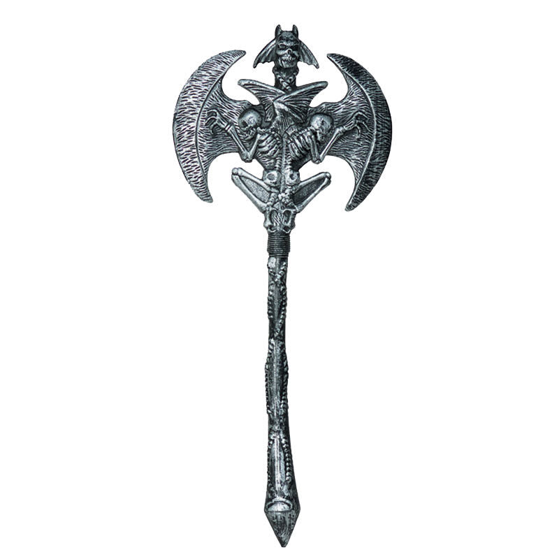 Doble hacha esqueleto, el complemento ideal para tus disfraces de terror la noche del 31 de Octubre | Medida: 50 cm