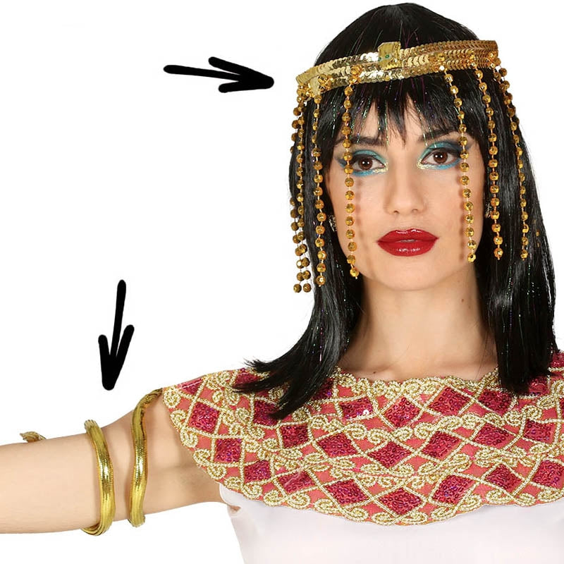 Avez-vous une fête ou soirée déguisée prochainement et vous souhaitez mettre de côté des tenues complexes pour vous déguiser? Nous avons la solution pour les personnes légèrement timides qui n'aiment pas attirer l'attention, nos kits accessoires déguisements sont une simple et excellente idée pour se déguiser à moindre coût et vous transformer en une énorme quantité de personnages. Ce nouveau kit accessoires déguisement Égyptienne vous permettra de vous transformer grâce à toute une série d'accessoires déguisements Égyptiens comme la coiffe et le bracelet. Achetez cet original kit déguisement Égyptienne Cléopâtre et créez vos propres déguisements faits maison.