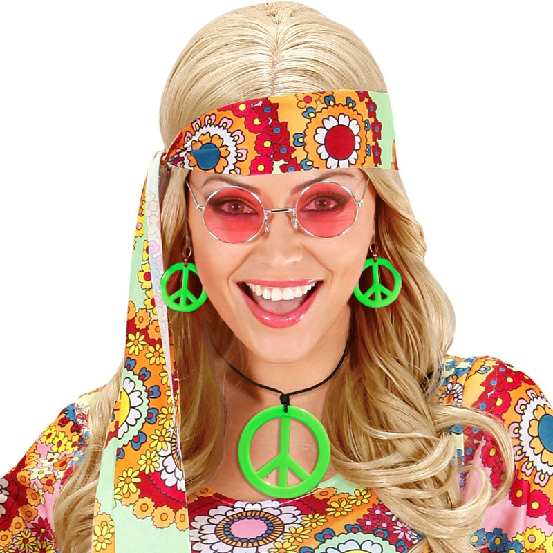 Kit d'accessoires hippie vert fluo est la touche originale parfaite pour compléter votre costume de manière frappante et colorée lors de tout événement déguisé, Carnaval ou soirée costumée.