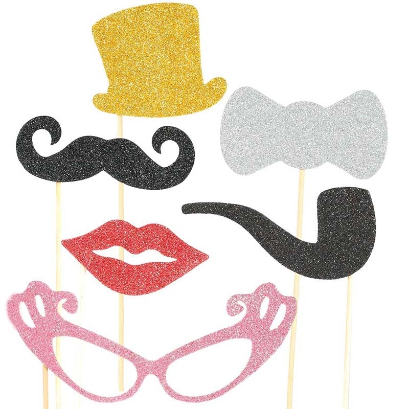 Kit accessoires pour un photobooth mariage comprenant 6 pièces brillantes pour un évènement qui permettra des photos amusantes et inoubliables.