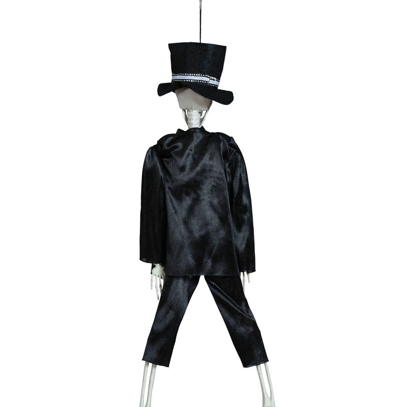 Le Marié Squelette Suspendu avec Chapeau Haut-de-forme est la touche originale parfaite pour compléter la décoration de manière lugubre et effrayante lors de tout événement de costumes effrayants ou fête d'horreur.