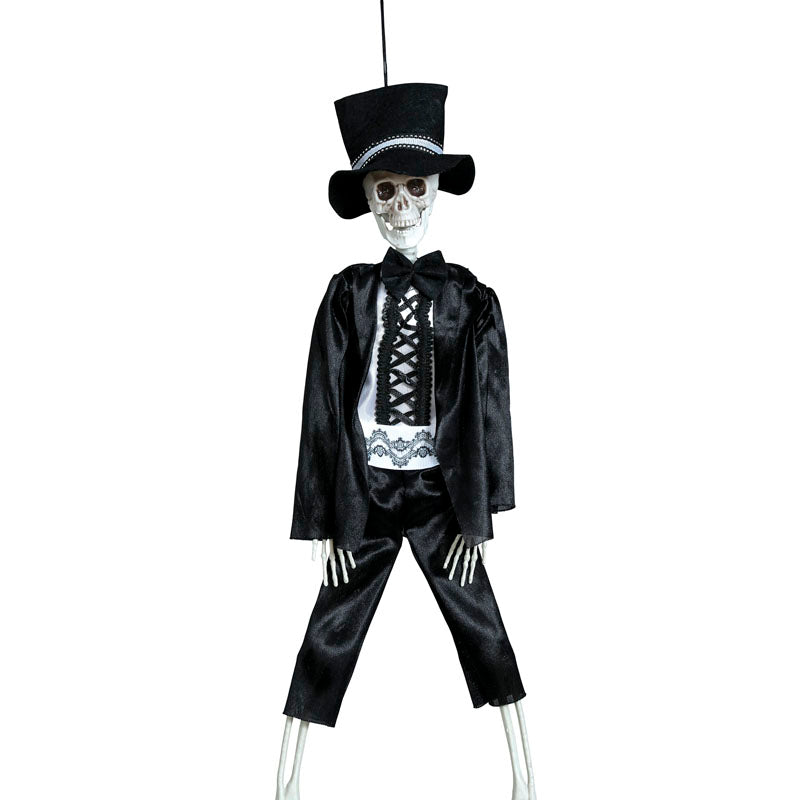 Ne laissez pas votre mariage d'horreur ou votre fête d'Halloween passer inaperçus. Ajoutez notre Marié Squelette Suspendu avec Chapeau Haut-de-forme à votre panier maintenant et préparez-vous pour une célébration que vos invités n'oublieront jamais. À un prix qui ne vous fera pas peur !