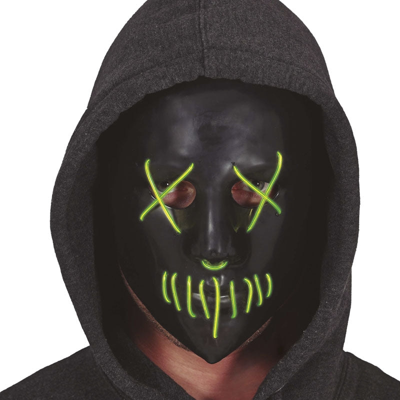 Masque noir lumineux American Nightmare est la touche terreur parfaite pour compléter votre costume Halloween de manière frappante et colorée lors de tout événement déguisé ou soirée costumée horrifiante.