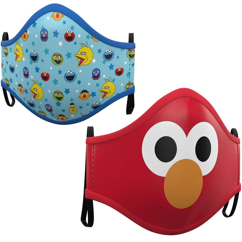 Lot de 2 masques Rue Sésame hygiéniques réutilisables pour enfants pour aider à prévenir la propagation du coronavirus COVID-19. Ces masques réutilisables pour enfants servent également de protection personnelle contre la poussière et la pollution.