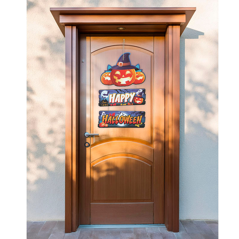 Décorez votre porte avec le Panneau en bois avec Citrouille Happy Halloween et recevez vos invités dans une ambiance festive et effrayante !