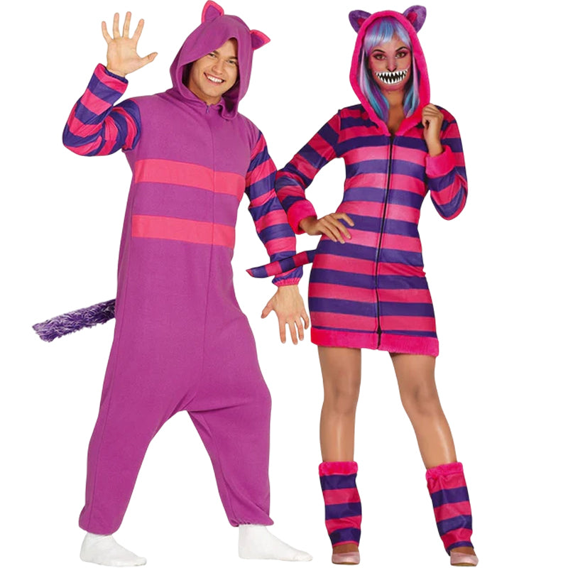 Alucinad con nuestros nuevos disfraces Gatos Cheshire de Alicia a juego para parejas, diseñados para que os podáis vestir a conjunto con vuestro partner in crime y no dejar a nadie indiferente. Estos disfraces conjuntados de Gatos Cheshire de Alicia son ideales para cualquier ocasión y están confeccionados con los materiales de la más alta calidad, lo que les proporciona una sensación cómoda y una apariencia auténtica. Multitud de detalle y acabados más que aceptables en este conjunto de disfraces darán el toque de realismo que necesitas para ir disfrazado a juego de Gatos Cheshire de Alicia convirtiéndoos a la pareja en el centro de atención de cualquier evento, desfile de Carnaval o una despedida de soltero y soltera. ¡Si nunca antes se te había ocurrido la idea de disfrazarse en pareja no sabes lo que te perdías, originalidad en estado puro! Estos disfraces Gatos Cheshire de Alicia en pareja son adecuados para diferentes tamaños y formas corporales, lo que garantiza que cada pareja pueda encontrar el ajuste perfecto. Además, los disfraces son fáciles de limpiar y almacenar, lo que los convierte en una inversión a largo plazo para futuras ocasiones dónde necesites ir disfrazado con tu pareja. Los disfraces a conjunto de Gatos Cheshire de Alicia también pueden adquirirse por separado, justo debajo de estas líneas tiene acceso a la compra individual.