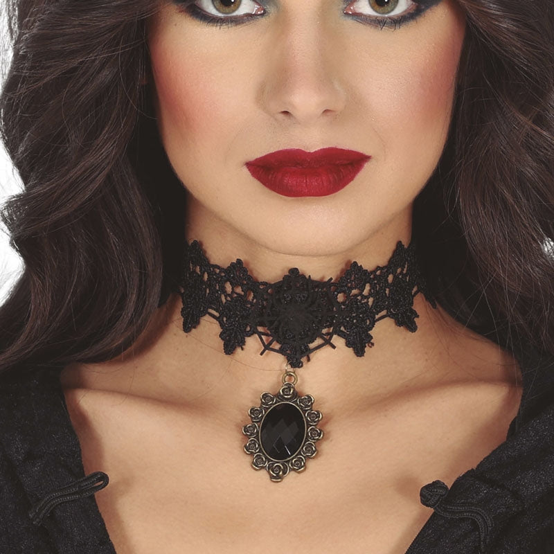 Ras-du-cou noir avec pierre est la touche terreur parfaite pour compléter votre costume Halloween de manière frappante et colorée lors de tout événement déguisé ou soirée costumée horrifiante.