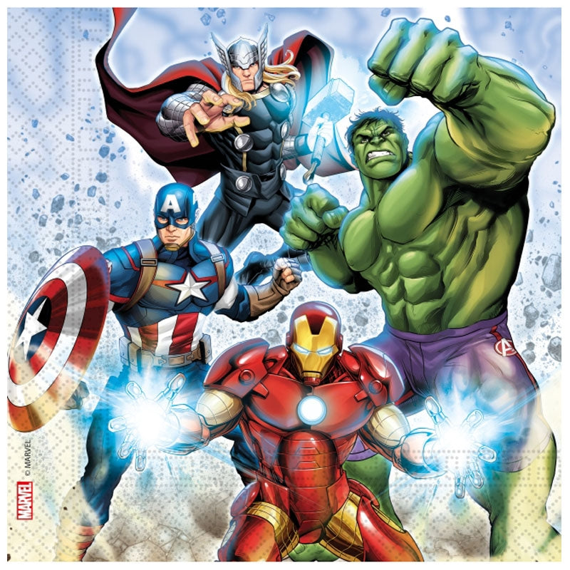 Célébrez un anniversaire et décorez la table de fête avec ce lot de 20 serviettes Les Vengeurs de fête en papier